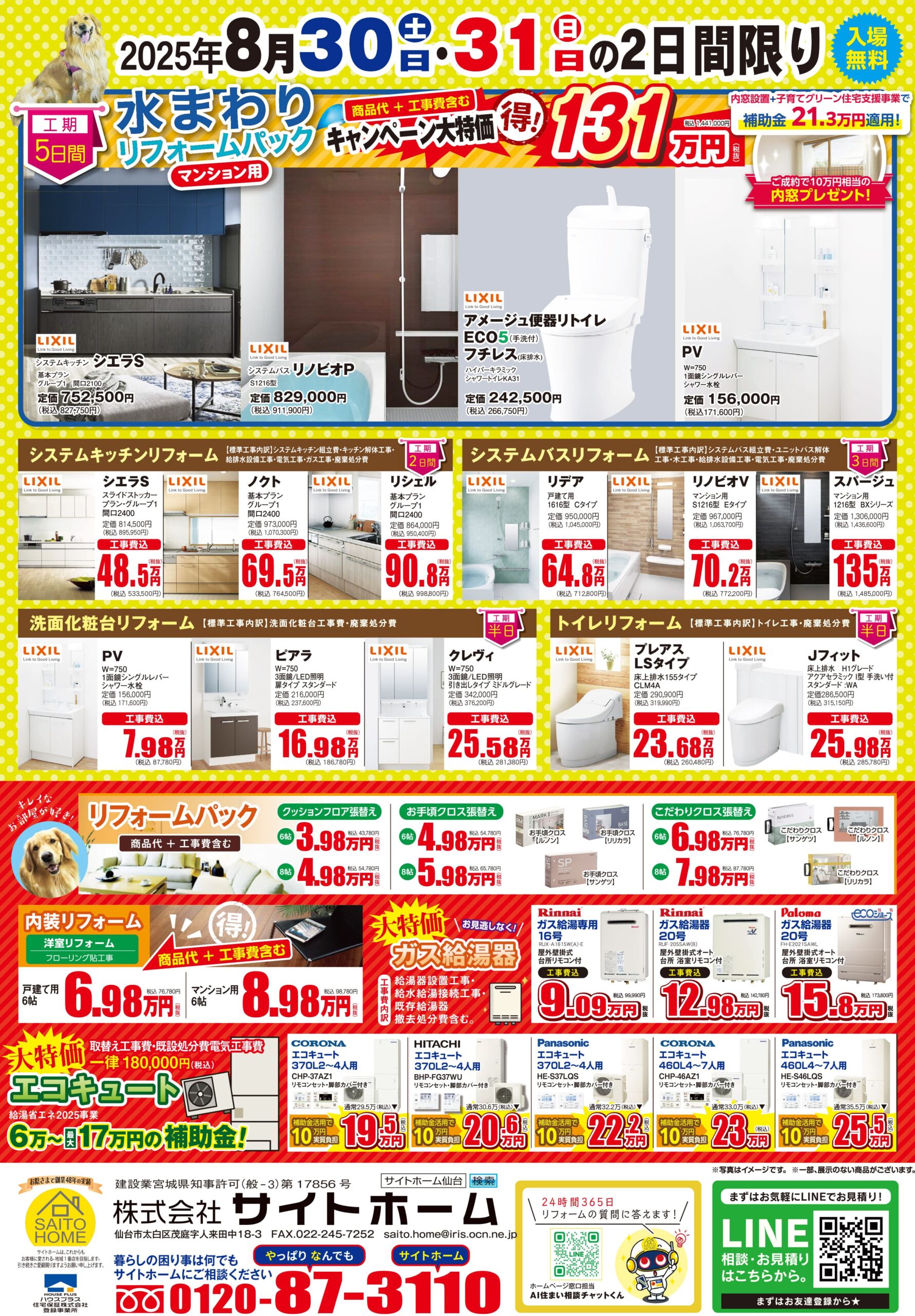 - 8月30日(土)・31日(日)10:00~17:00 (会場:LIXILショールーム仙台) 詳しくはこちら >
