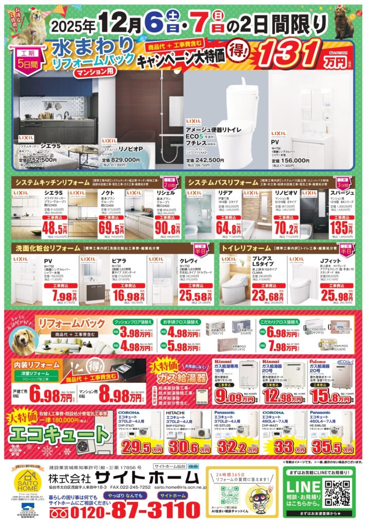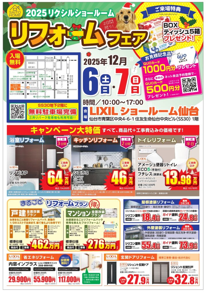 2025年12月6日(土)・7日(日)の2日間限定でLIXILショールーム仙台にてリフォームフェアを開催します!