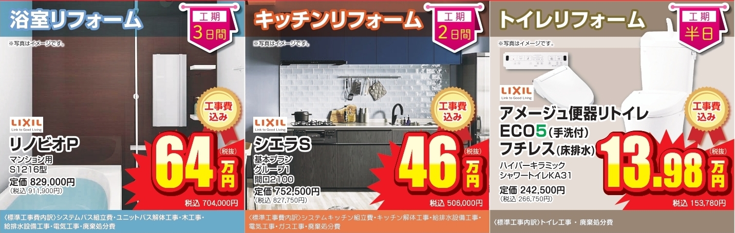 商品代+工事費込みのキャンペーン大特価リフォーム!